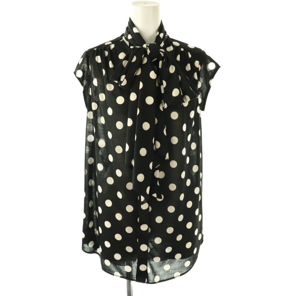 ドット柄スリーブレスボウタイブラウス