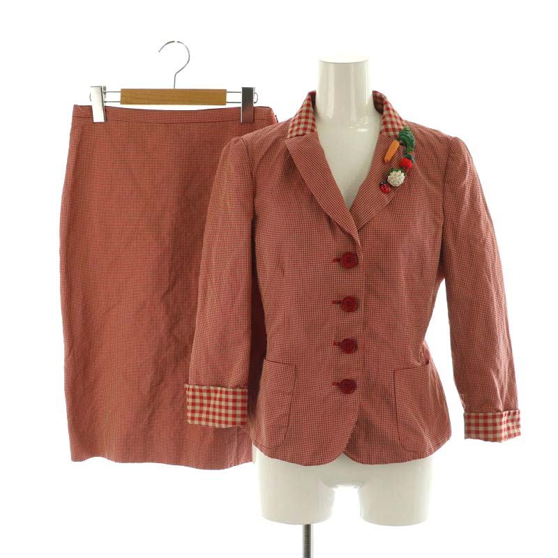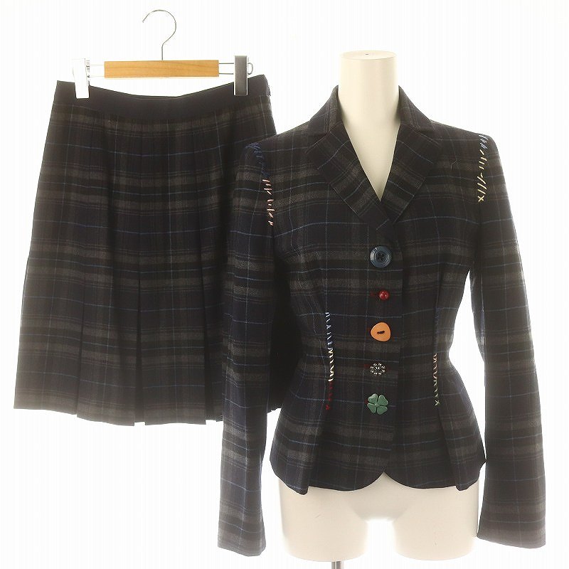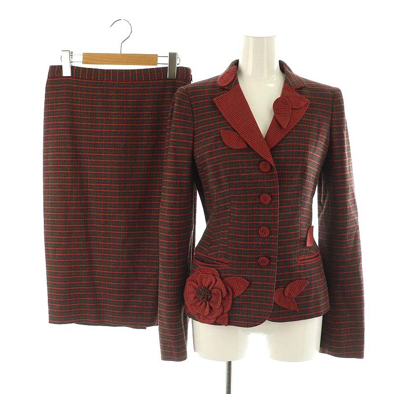 チェック フラワーモチーフ ジャケット スカート セットアップ