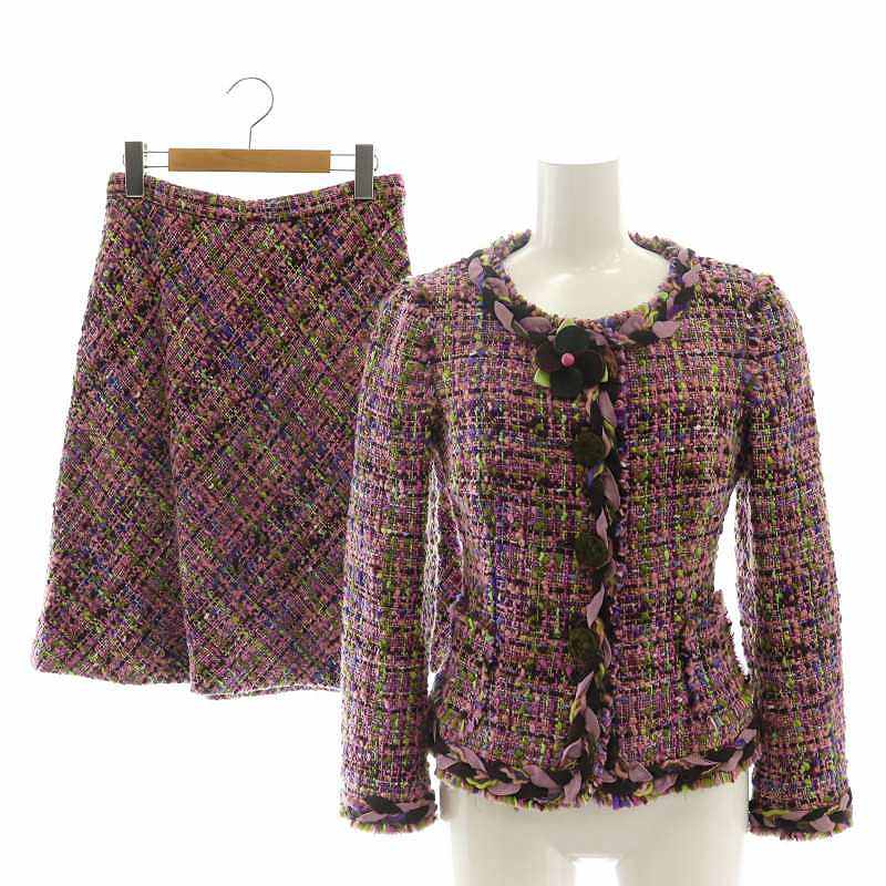 ツイード 花柄 ジャケット スカート セットアップ