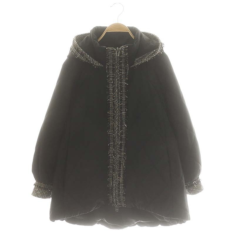 ツイードデザイン中綿キルティングフードコート