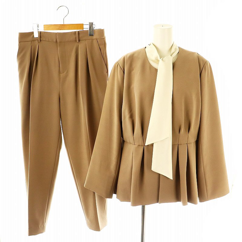 ボウタイブラウス×ペプラムフレアジャケット×パンツ 3点セットアップ