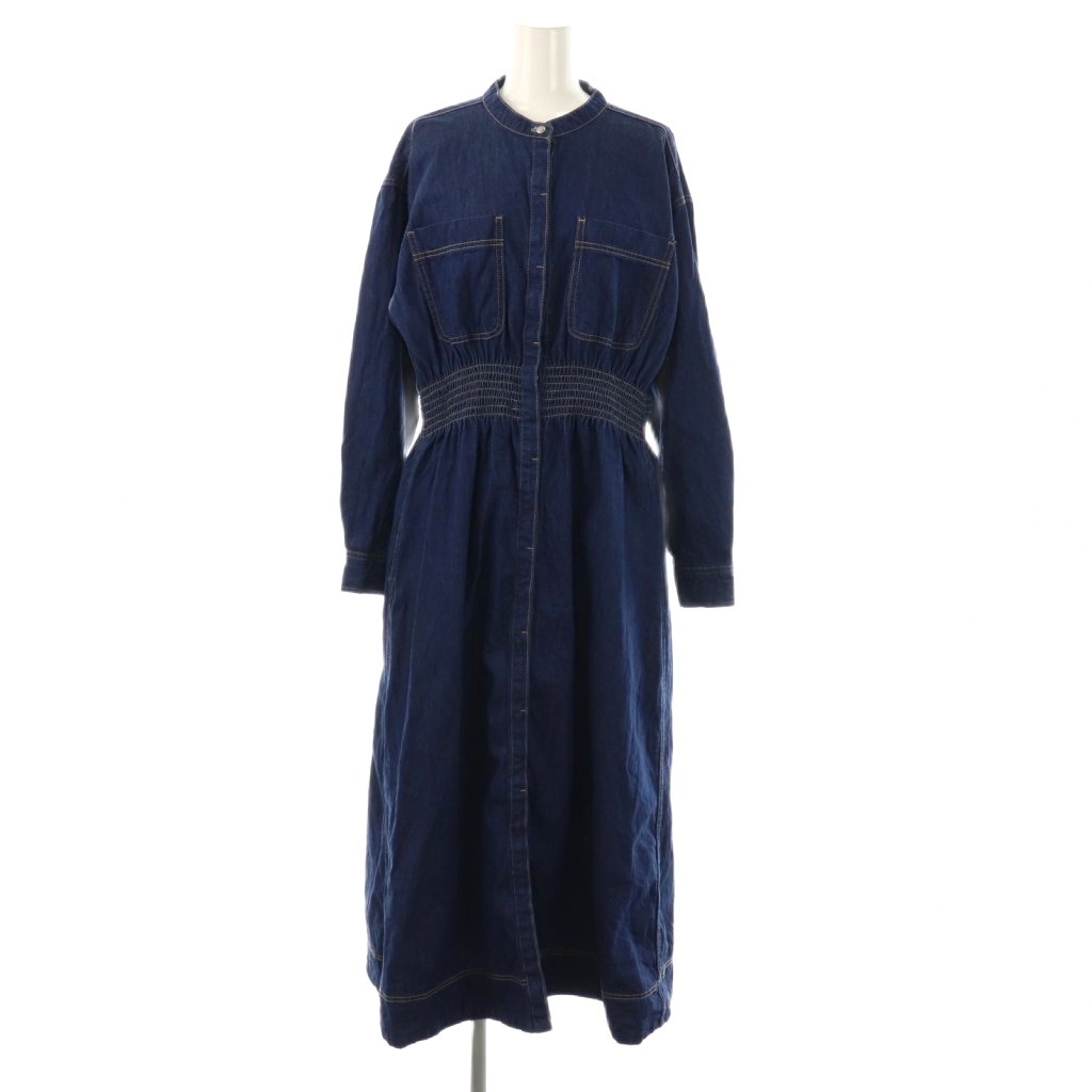 シャーリング デニム ポケット ワンピース