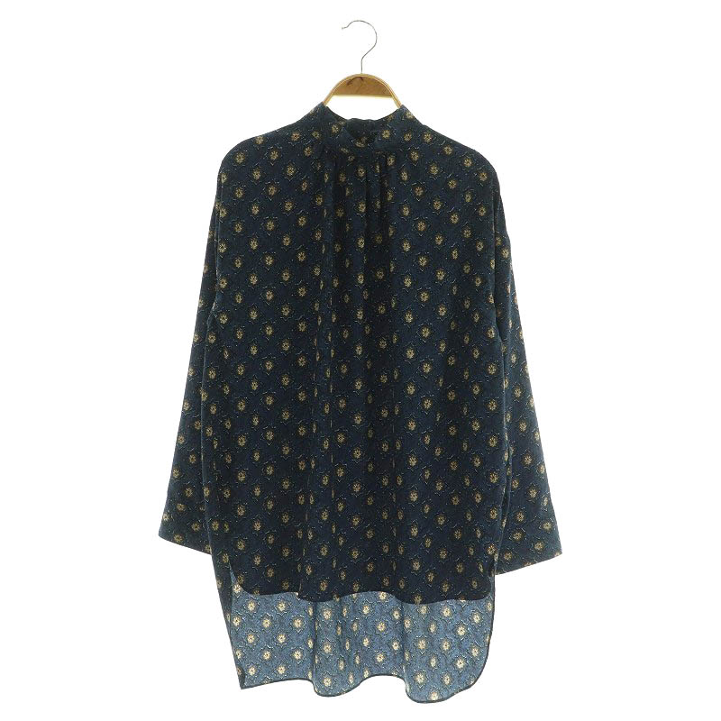 ポリエステルプリント スタンドカラーブラウス