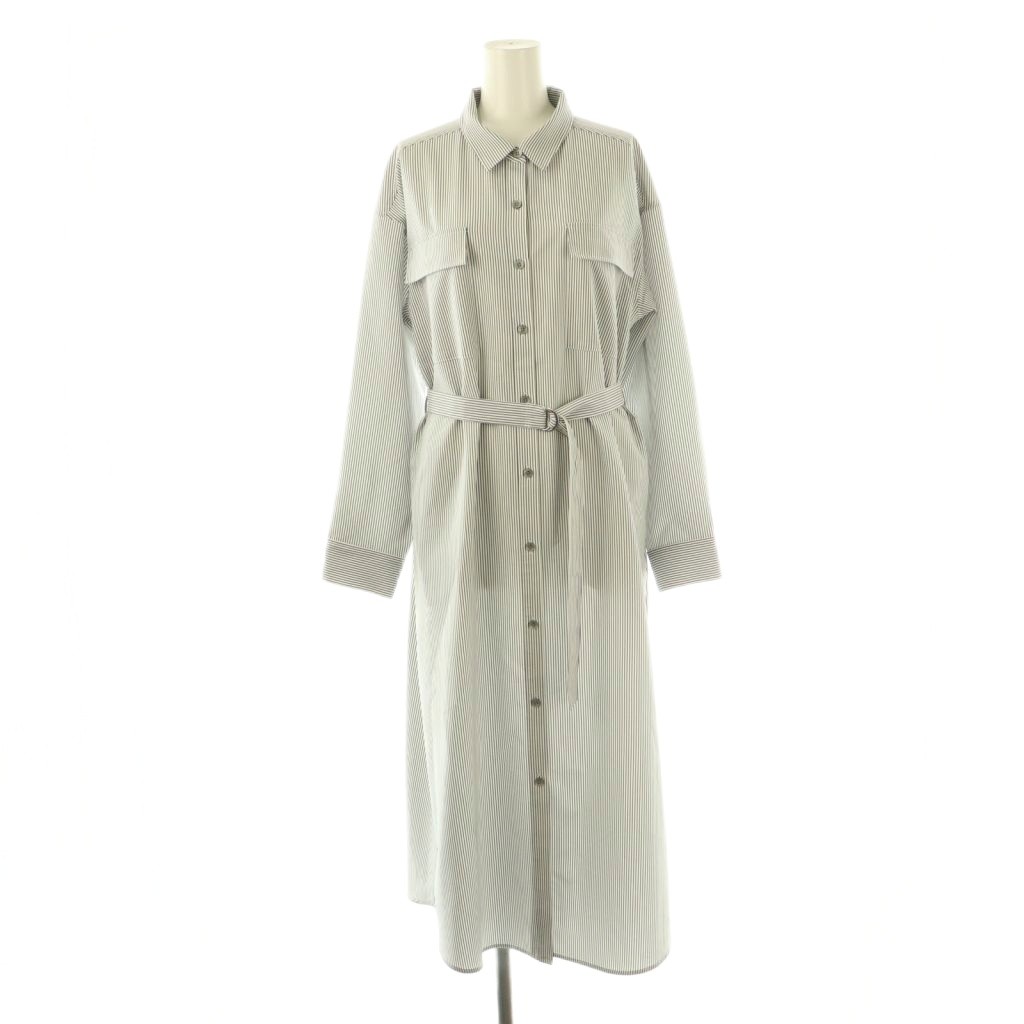 ウエストベルト付き肩タックシャツワンピース